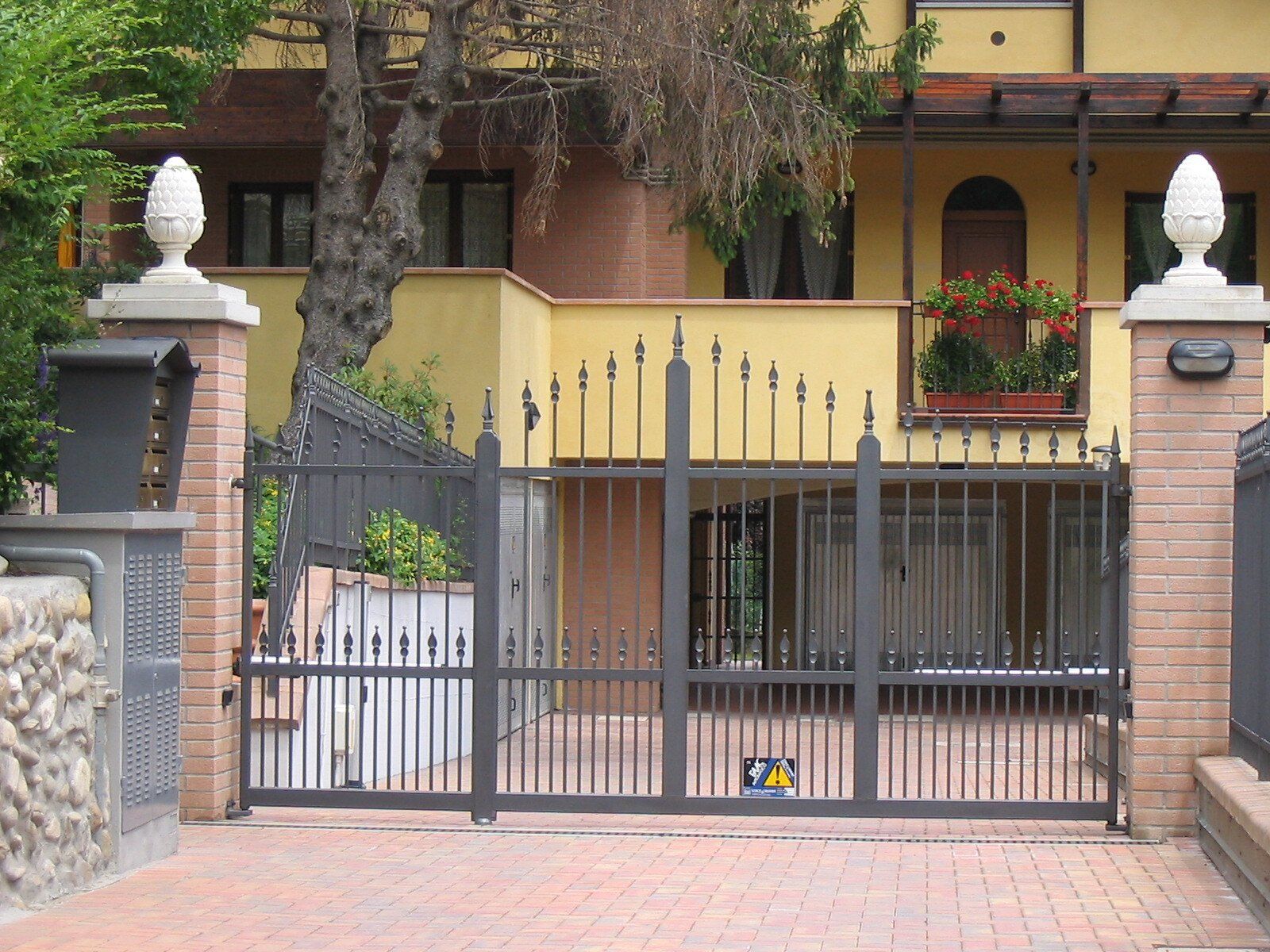 Il cancello scorrevole si apre e si chiude orizzontalmente, scorrendo lungo un binario a terra. Questa è la soluzione migliore se non vi è abbastanza spazio per aprire i battenti o se il terreno è in pendenza.